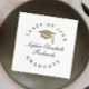 Este guardanapo de papel de formatura elegante e clássico apresenta um design simples em preto e branco com um chapéu de formatura dourado e texto personalizável. Itens coordenados disponíveis na Coleção de Formatura Script Clássico por Stacey Meacham. Clique no botão de edição para personalizar este design.