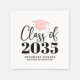 Este guardanapo de papel para festa de formatura simples e moderno apresenta um layout limpo e centralizado com um chapéu de formatura e borla em rosa claro posicionados na parte superior do design para um visual suave e feminino. O tom rosa claro adiciona um toque doce e elegante e pode ser ajustado para tons mais claros ou mais profundos de rosa, se necessário. Logo abaixo do chapéu, "turma de" aparece em uma elegante fonte manuscrita, seguida pelo ano da turma, que pode ser personalizado para "Turma de 2026" ou qualquer ano que você escolher. Abaixo do ano, o nome do formando e o nome da escola são exibidos em fontes serifadas atemporais para um acabamento polido e equilibrado.