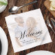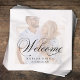 Este design apresenta um guardanapo de papel cocktail de casamento, com um tema preto e branco, com elegante, clássico tradicional, tipografia, roteiro e uma moda, modelo de fotografia na moda