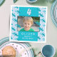 Bonita Gecko Lizard Kid Foto Festa de aniversário de Napkins. Padrão de lagartixa bonito em azul escuro. As lagartas têm manchas escuras. Adicione sua foto favorita e crie doces guardanapos de festa de aniversário para crianças.