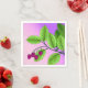 Framboesas raspadas sobre um ramo de folhas primavera verdes contra um fundo macio, rosa a lilás, céu amanhecer