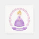 Uma princesa loira de cabelos em um vestido brilhante roxo decora esses guardanapos. Personalize-o com o seu nome. Faz um sotaque bonito na festa de aniversário da sua garota. Projetado para você pelo Blackberry Boulevard.