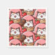 Um gato feliz em um cone de sorvete com o sorvete na cabeça, o sorvete é de cor de morango e há um floco de chocolate saindo do sorvete. Por martinspixs.
