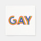 Este trabalho de arte apresenta a palavra Gay em uma fonte colorida do arco-íris.