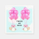 Meninas gêmeas bonitas, guardanapos chás de fraldas, com balões cor-de-rosa e gêmeas originais "Duas Vezes Bonitas", citaram.