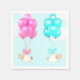 Núcleos criativos de chás de fraldas com doce gêmeo, recém-nascidos meninas e balões rosa e azuis.