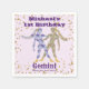 Gemini divertido pintado num estilo impressionista. As silhuetas têm os pés e o cabelo mastigados com o padrão de nuggets de ouro. O dourado aleatório é exibido em volta do texto e da foto. As cores utilizadas são cor púrpura, azul e outono para a imagem e roxo profundo para o texto. O fundo é rosa claro. Você pode alterar as cores do texto e do plano de fundo com ferramentas do Zazzle.