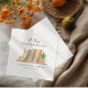 For the mom-to-be who is holding a book themed baby shower. These gender neutral watercolor 'A new chapter begins' baby shower napkins feature a book shelf with hand drawn books, a plant and a cute cuddly toy giraffe. The design combines books with an accent cuddly toy to represent the new arrival. These napkins can be personalized to include mom-to-be's name and baby shower date.
