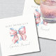 Um design de guardanapo charmoso com um arco grande, rosa e azul, de aquarela no centro. No topo, "Sobrenome bebê" é exibido em uma fonte serif clássica, com "Revenda de gênero" escrito elegantemente abaixo em script manuscrito. Este simples e clássico design adiciona um toque divertido, mas elegante, fazer perfeito para celebrar seu evento especial. As cores do guardanapo podem ser personalizadas para corresponder ao seu tema revelador de gênero, fazer-o como uma adição versátil e na moda à decoração do seu partido.