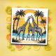 Um legal design com umas girafas na praia durante o pôr do sol!
