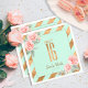 Comemore em estilo com este modelo de guardanapo de papel Sweet XVI, com uma grande e falsa folha de ouro 'Sweet 16'. O fundo verde de menta sólida é delimitado por faixas diagonais com o mesmo efeito de folha de ouro, com rosas cor-de-rosa pelúcias em cantos opostos. Se preferido, o "Sweet 16", que chama a atenção, é facultativo e pode ser eliminado para utilizar este modelo noutras ocasiões. Use o modelo fornecido para personalizar os detalhes do evento. Procure ID756 para ver outros produtos e opções de cores para este design.