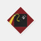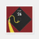 Guardanapos criativos para a classe de 25 formandos com linha engraçada e boné de formatura preto clássico com fita de ouro sobre fundo de marrom.