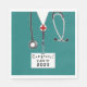 Os guardanapos do formando de enfermeiros criativos, com parabéns, esfregões hospitalares e estetoscópio. Editar texto para personalizar.