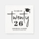 Este guardanapo de papel para festa de formatura simples e moderno apresenta um layout limpo e minimalista com um acento de gorro de formatura colocado no canto superior direito. “Turma De” aparece em tipografia serif clássica, enquanto a palavra “Vinte” é escrita em uma fonte manuscrita fluida. O número “26” está posicionado logo abaixo do texto em script, também em uma fonte serif, criando uma maneira única e elegante de exibir “Turma de 2026.” Abaixo, o nome do graduado e da escola são exibidos em fontes serif correspondentes para uma aparência polida e coesa.