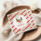 Os guardanapos de festa de aniversário de Reindeer de Natal com uma cara de rena fofa e flocos de neve Dourados e Greve de Largura Vermelha e Dourada.