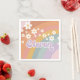 Groovy Retro Rainbow 11 com guardanapos de margarida.