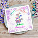 Cabras de aquarelas coloridas e bonitas em cor rosa vibrante, roxo, azul, laranja, amarela e aqua. Um animal de fazenda bonitinho cria guardanapos de festa de aniversário etária com cabras em cabras. Esta decoração de festa divertida é fácil de personalizar para criar um fornecimento de festas único adequado para crianças e amantes adultos de cabras. Ilustrações originais de cabra psicodélica colorida da artista Catherine Sweetman