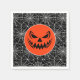O guardanapo de papel da festa das bruxas é mostrado com uma teia de aranha festiva e um impressão assustador de abóbora. Personalize este item ou comprar como está. Vendida no pacote Imagem licenciada