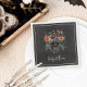 Um design de Dia das Bruxas Chico assustador, com uma ilustração do crânio floral tropical tocado com flores laranja e peludas e folhagem verde da selva, num fundo negro enfumaçado. Personalize este guardanapo de papel único e elegante do Dia das Bruxas com texto personalizado; mostrado com "Feliz Dia das Bruxas".