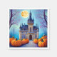 Colheita da Lua Pumpkin Castle Paper Napkins - as cores são azul, laranja, marrom e creme.