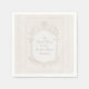 Elegant bridal shower napkins featuring an ornate rococo-inspired frame with delicate floral detailing and a soft embossed look.