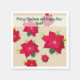 Feliz Natal e Feliz ano novo e Poinsettia, flores vermelhas de Natal em guardanapos. Adicionar cor de fundo personalizada.