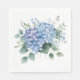 Party paper napkins are shown in the white luncheon size with a watercolor print of a pretty blue color hydrangea floral mix.