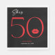 Moderno e chique, esta design de guardanapo de almoço de aniversário declara, "ela tem 50" e combina preto clássico e branco com sotaques de vermelho vivo, com um par lúgubre de lábios. É um design mínimo é um design simples e divertido para celebrar o aniversário do marco. Criado pela imprensa simplesmente de farmácia.