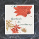 Uma bela queda de safras deixa guardanapos com "Dê obrigados para suas bênçãos" na letra do roteiro. Laranja, verde e ouro. Excelente de Ação de Graças - ou quando se sentir grato.