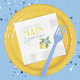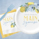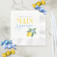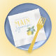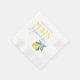 Elegantes e Doces Guardanapos de Papel Lemon Main Squeeze Cocktail Personalizado Moeda. Personalize com o nome da noiva. Apresentando lindas flores em aquarela azul-acinzentado elegante e um doce limão amarelo.