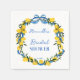 Limonados fita azul de cetim coquette modelo de guardanapos personalizados para chá de noiva, limonados azul e amarelo modelo de guardanapos personalizados para chá de noiva; guardanapos de verão para chá de noiva, decoração de mesa personalizada com limões italianos