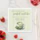 Listras Verdes Claras Minimalistas Toalhas de Papel para Chá de Noiva - Eleve a decoração do seu chá de noiva com estas toalhas de papel personalizadas. Estas toalhas de papel temáticas de chá de matcha são perfeitas para a noiva que ama matcha, gosta de chá e de tudo relacionado à saúde e bem-estar. Este design minimalista apresenta uma ilustração em aquarela de uma rica xícara de chá matcha espumoso com leite cremoso em um pires sobre um fundo verde com listras em tom de menta. A fonte manuscrita em estilo caligráfico reúne uma estética divertida e casual, mas elegante. Perfeitas para chás de noiva na primavera, verão e até outono ou encontros íntimos de noiva.