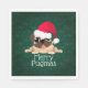 Cãozinho bem personalizado desenhado e desenhado cão de vômito em chapéu de Papai Noel. em um fundo de padrão leve.