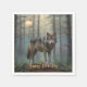 Estes guardanapos festas de aniversário apresentam um lobo bonito em uma floresta mágica sombria. O texto pode ser alterado ou eliminado.