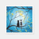 Dois gatos sentados em um galho observando a lua de cheio com um céu azul cheio de estrelas. Os ramos das árvores ao seu redor com pequenas flores amarelas. Gato de tuxedo preto e um gato branco bicolor e cinza pintado. Pintura acrílica branca moderna original de Donna Leger. Todos os Direitos Reservados. ©irony designs