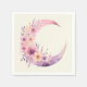 Guardanapos de papel com uma ilustração adorável que apresenta uma lua rosa e púrpura da lua. Bonito flores silvestres cor-de-rosa e amarelas adornam este corpo celeste.