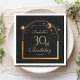 Papel aniversário de 30 anos de Astronomia Celestial Black Sun Moon Astronomy Napkins apresenta um elegante sol dourado, lua e estrelas com um quadro de ouro sobre um fundo preto. Dentro é a sua informação de aniversário de trinta anos. Personalize editando o texto nas caixas de texto. Projetado para você pelo Evco Studio www.zazzle.com/store/evcostudio