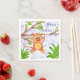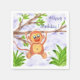 Alguns guardanapos de papel bonitos para a festa de aniversário de uma criança com a ilustração caprichosa de um macaco da selva e as palavras "Feliz Aniversário !" © ArianeC Ilustrações