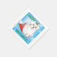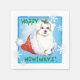 Celebre o feriado com um filhote malteses giro sentado em um chapéu de Papai Noel em meio a uma onda de flocos de neve e as palavras, Feliz Feliz Feliz Feliz Feliz Howlidays!