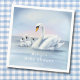 Estes guardanapos apresentam uma aquarela digital é de uma Mama Swan nadando com seus bebês nadando em um lago azul calmo com um pôr do sol de pêssego ao fundo.