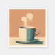 Uma xícara estilizada de café emite vapor formando bolhas de fala contra um fundo cor de laranja quente e mudo. A composição usa uma abordagem minimalista e geométrica para uma estética moderna.