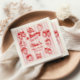 Como podem ver, este único e elegante guardanapo de chá de fraldas de morango doce tem um modelo bem projetado. Com morangos desenhados pela mão vermelha e um nome escrito manuscrito branco e data em vermelho magenta. Tudo sobre fundo creme e listras de aquarela. O que você pode personalizar facilmente ao clicar no botão personalizar.