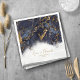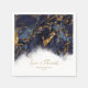 Um fundo abstrato que lembra o mármore em tons de azul marinho veinado com ouro reluzente é o pano de fundo para textos elegantes e layouts modernos de design nos pedaços desta bela suíte de casamento. O guardanapo de papel de casamento mostrado aqui apresenta o texto acima, mais o texto opcional de 'Love & Obrigados e um modelo para adicionar os nomes da noiva e noiva e a data do casamento. Procure ID644 para ver todas as peças de coordenação neste conjunto.