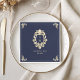 Núcleos de casamento elegantes, azuis e barrocos, marinho, com quadro de colheita de ornamentado e monograma personalizável. Um na moda adicional às suas mesas de recepção, hora de cocktail ou preparação de janto de casamento. Perfeito para casais que procuram um tema de casamento formal e luxuoso. Estes guardanapos personalizados coordenam-se com a suíte de casamento azul e barroco cheio para um espetáculo coeso e eterno.