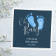 Os guardanapos de chá de fraldas deste rapaz estão decorados com Oh Baby na tipografia moderna do roteiro e os pés de bebê com aquarela pintada manualmente em azul pastel num fundo azul escuro de marinho. Facilmente personalizável. Original Watercolor © Michele Davies.