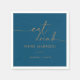 Esta bebida de ouro azul marinho que somos guardanapos casados são perfeitos para um casamento rústico. O design simples e elegante apresenta a tipografia clássica e de rico em ouro. Faça destes guardanapos seus, incluindo os nomes da noiva, do noivo e da data do casamento. Estes guardanapos podem felicitar uma recepção de casamento, janta de ensaio, festa de noivado e muito mais!