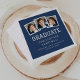 Estes guardanapos festas de formatura apresentam uma colagem de três fotos quadradas personalizadas acima da palavra "formando" em tipografia branca esportiva sobre um fundo azul marinho. Adicione o nome do formando, a escola e o ano de classe abaixo na fonte sans serif.