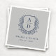 Traga a sofisticação do eterno para a sua celebração com estes guardanapos de casamentos azuis e prateados de marinho azul. Apresentando uma crista clássica adornada com flores delicadas, suas iniciais personalizadas, e data de casamento, esses guardanapos adicionam um toque elegante personalizado às suas mesas de recepção. O fundo do marinho profundo aliado a sotaques de prata cria um olhar refinado que complementa temas de náutica, inverno e noites de casamento. Perfeito para recepções, jantas de ensaio, festas de noivado ou chás de panela, esses guardanapos misturam o estilo moderno com encanto clássico.
