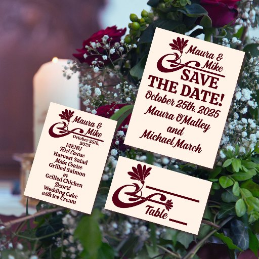 Um nouveau de arte clássico floresceu aliado a um texto dramático e cursivo que faz uma queda ou design casamento no inverno impressionante.