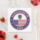 Crachá de Massachusetts com bandeira de Massachusetts e bandeira dos Estados Unidos cores, forma arredondada. O emblema de Massachusetts. Boston Massachusetts.